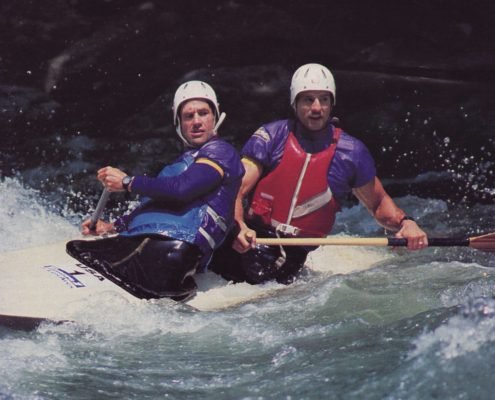 Jamie brought home overall C2 wins from the 1987 World Championships, 1988 and 1989 World Cups, and his comeback in 1992 at the Barcelona Olympics in La Seu d’Urgell with C2 partner Lecky Haller was remarkable, finishing just out of the medals in 4th place. He continued to race on his own for many years as an inspiration to his local paddling club and with his son, Devin.